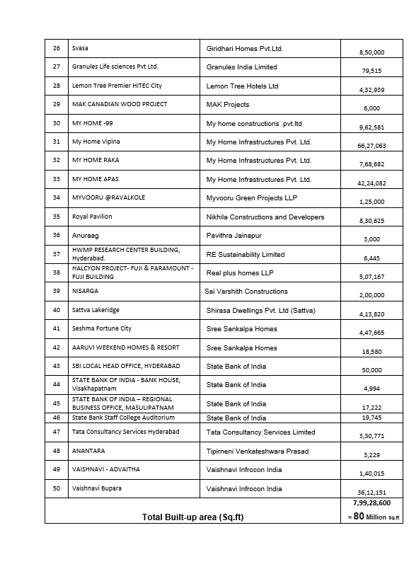 Sunil Chandra Reddy elaborated on the growth potential of Hyderabad which is set to be 4th fastest growing city in the world by 2030. He said that such growth has to be sustainable for the benefit of the people and this sustainability translates to survivability in the time to come. He suggested that green buildings are a great starting step to this sustainable outcome.
