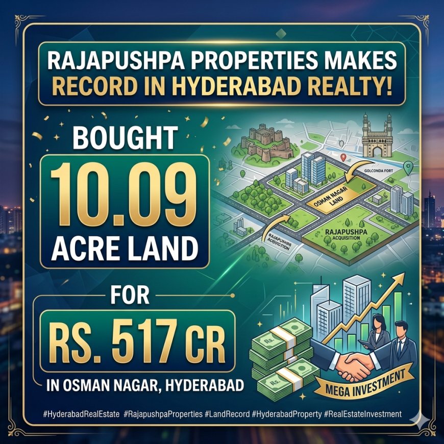 In a major development for Hyderabad’s booming real estate market, Rajapushpa Properties has secured a prime 10.09-acre land parcel at the Telangana State Industrial Infrastructure Corporation (TGIIC) auction in Osman Nagar. The deal, valued at approximately ₹517 crore, reflects both the developer’s aggressive expansion strategy and the rising demand for premium land in the city’s western corridor.